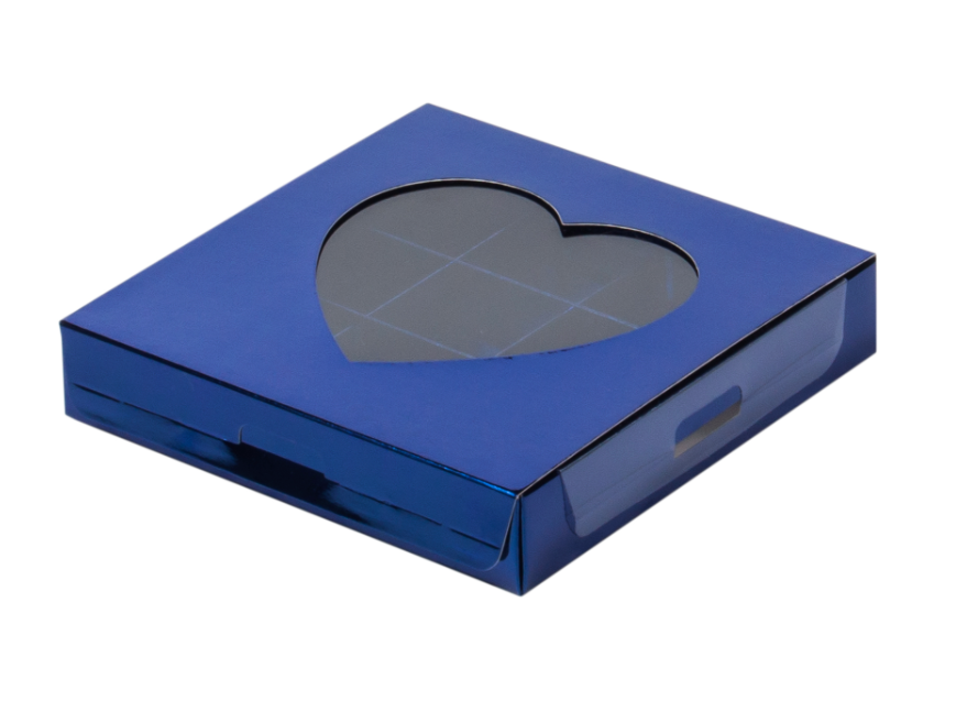 Коробка для конфет синяя с окном сердце 16 см*16 см*3 см (9)