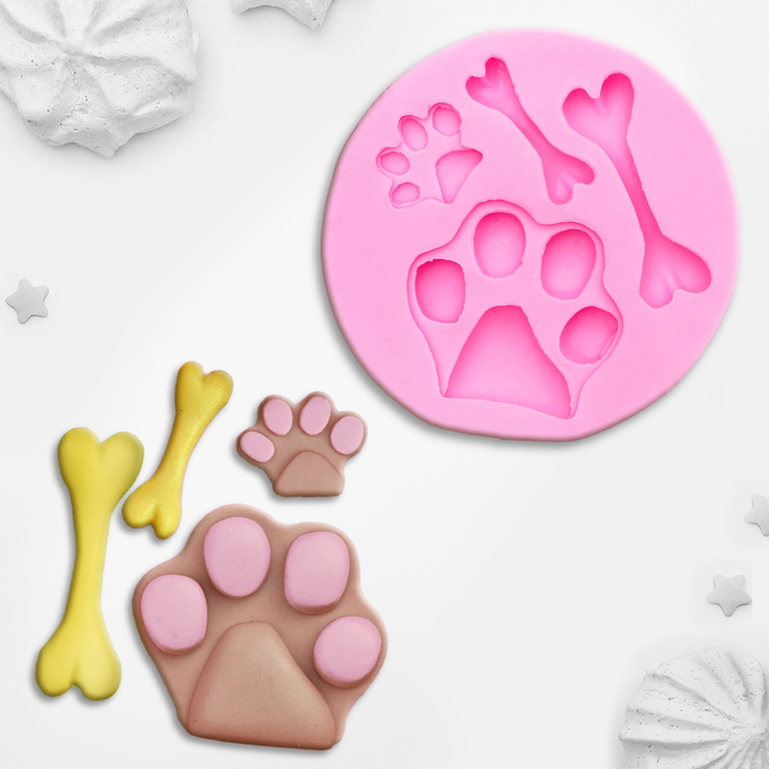 Молд силиконовый 7,5х7,5х1,2 см "Лапки и косточки"