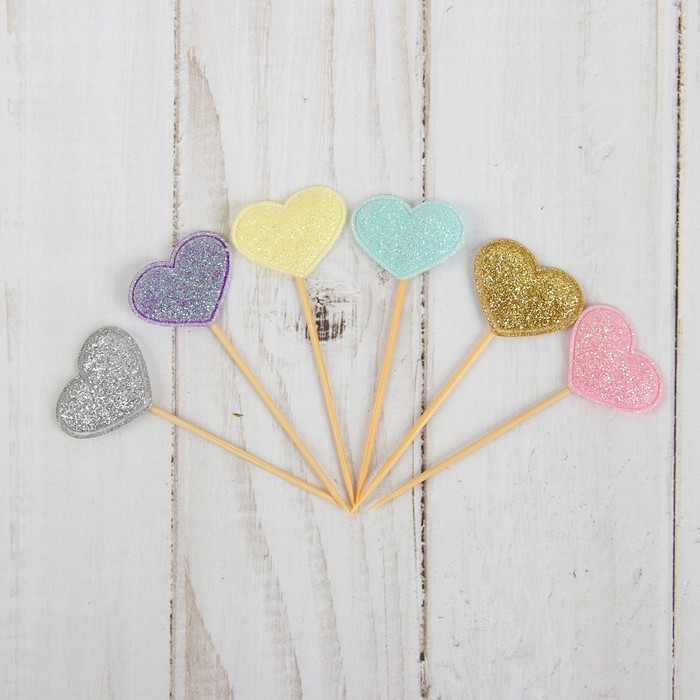 Шпажки для канапе "Сердечки" цветные 6 шт