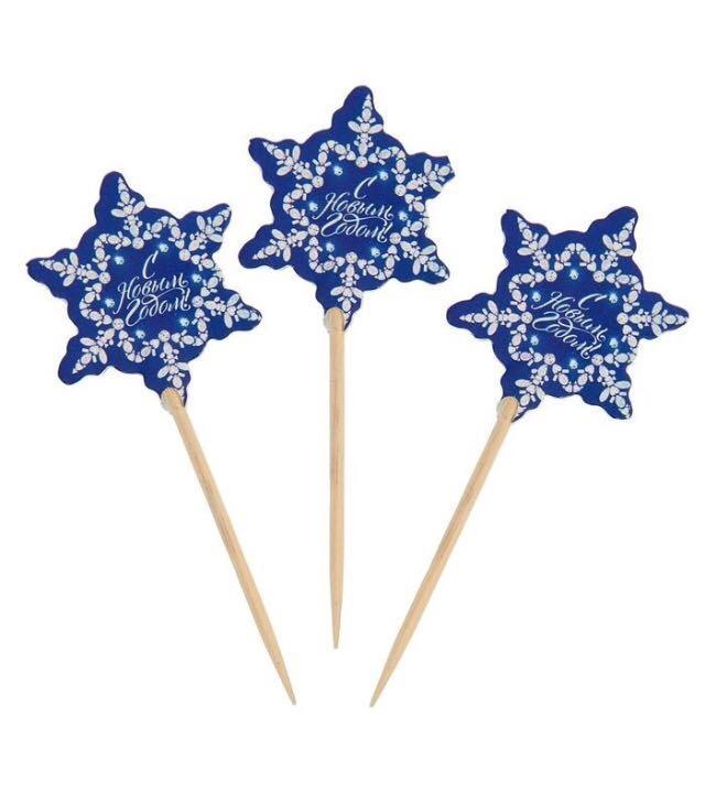 Шпажки для канапе "Снежинки" цвет синий (набор 12 шт)