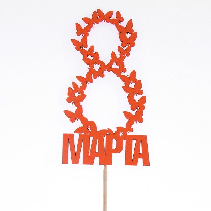 Топпер "8 марта" бабочки, красный, 11.5х6.5 см