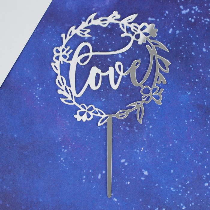 Топпер "Love" венок, цвет серебро акрил