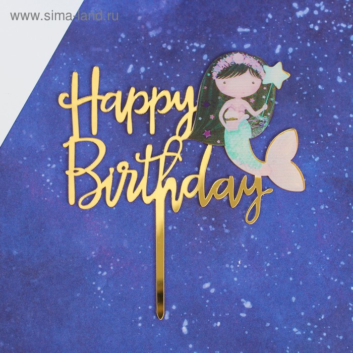 Топпер "С Днём Рождения" русалка акрил