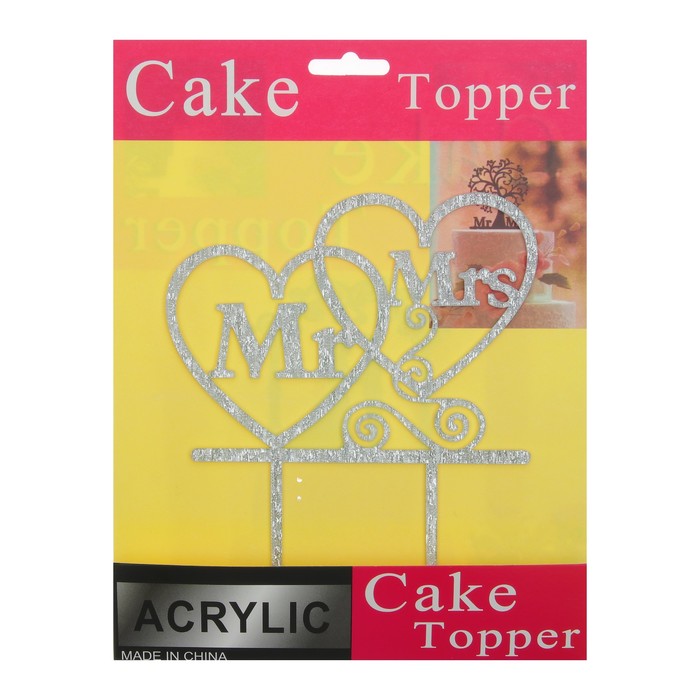 Топпер в торт Mr & Mrs, цвет серебро