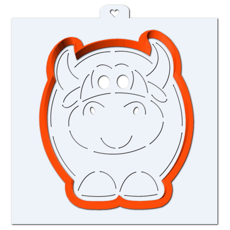 Вырубка с трафаретом Пухлый бык №2 9,5*11 см