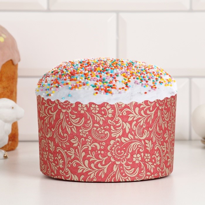 Форма бумажная для кулича d90, h90мм ФЛОРА КРАСНАЯ 250г
