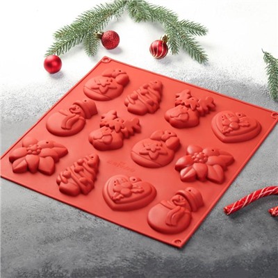 Форма для шоколада 3D Доляна «Ёлочные игрушки», 30×30 см, 12 ячеек, цвет МИКС