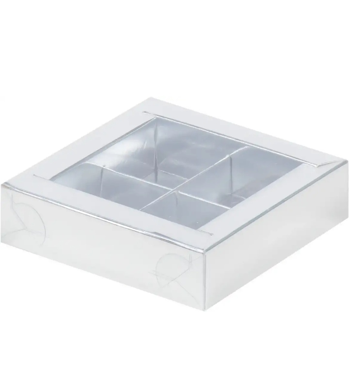 Коробка для конфет серебро с прозрачной крышкой 11,5*11,5*3см (4)
