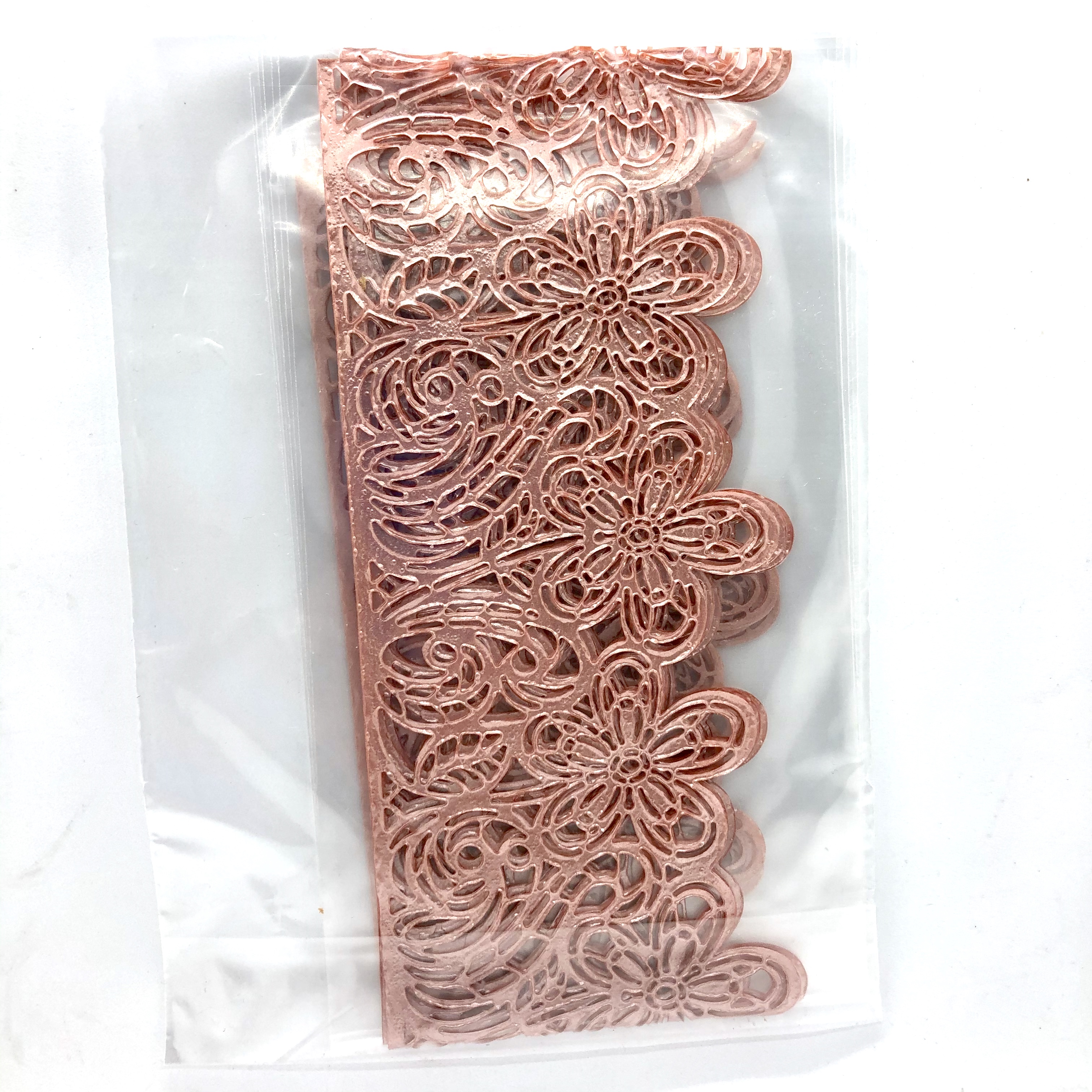 Кружево сахарное перламутровое розовое 3 шт 38,5х9 см