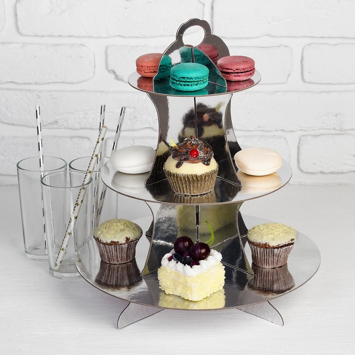 Подставка для пирожных "Нежность" цвет серебро